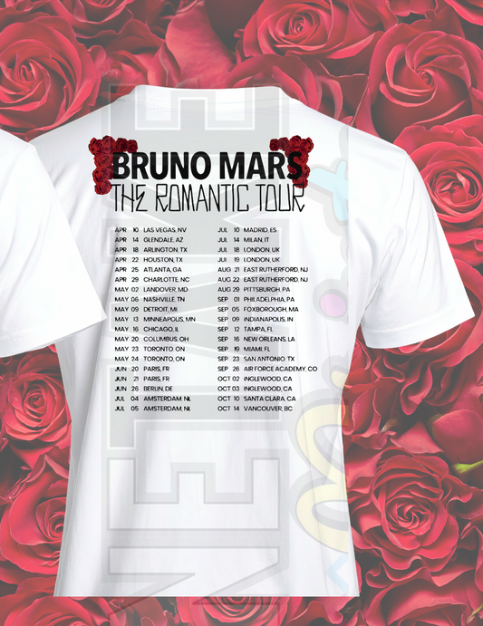 Bruno Mars The Romantic Tour Graphic Glitter Tee